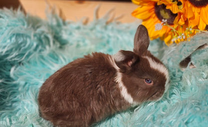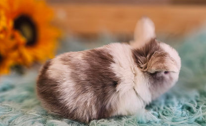 These pretty bunnies have a base color of white with chocolate mixed in. Some can be heavily marked with chocolate, some lightly, and some also "broken" meaning the pattern is similar to a tri but only the chocolate color.